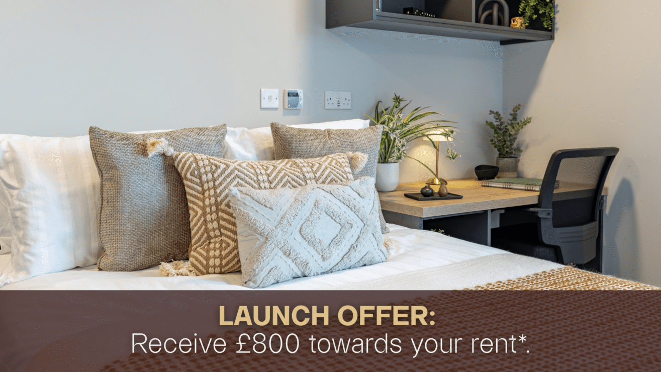 LAUNCH OFFER: For a limited time only reserve and check in to a Premium Studio by 31st October and receive £800 towards your rent*.