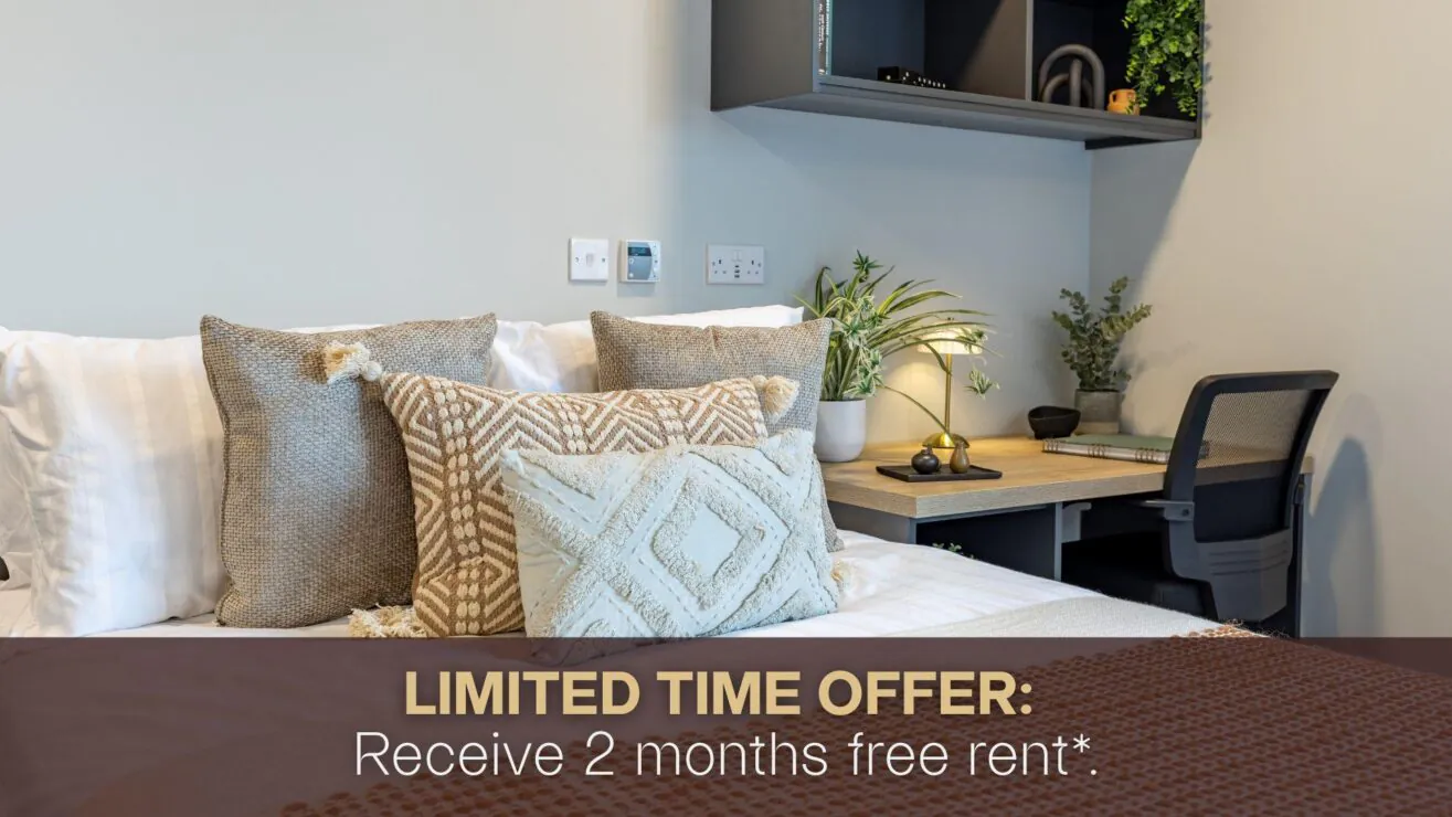Reserve and check in to a Premium Studio by the 31st January 2026 and qualify for two months’ free rent. Please speak with our team for further details.